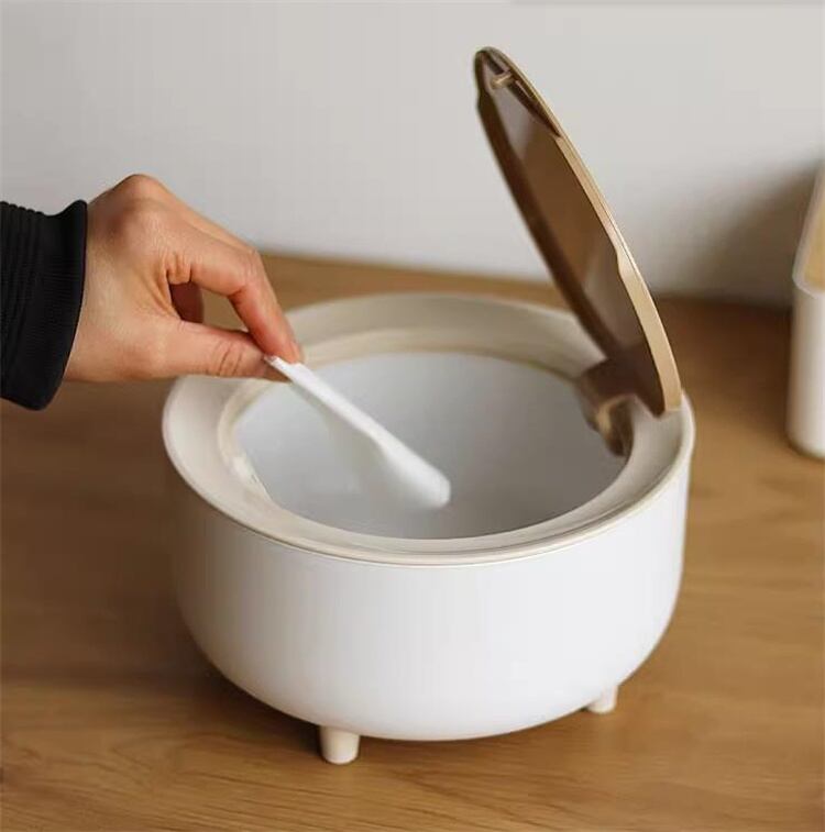 この卓上ゴミ箱は、シンプルでスタイリッシュなデザインが特徴。インテリアに馴染みやすく、使いやすさも抜群です。また、プレス式の蓋が付いているため、ゴミが見えずに清潔感を保てます。